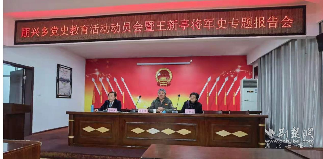 荆楚网(湖北日报网)讯(通讯员杨佳、张迪)3月18日下午,开国上将王新亭之子王万里,受邀参加孝南区朋兴乡党史教育活动动员,并为该乡党员干部作王新亭将军史专题报告。
