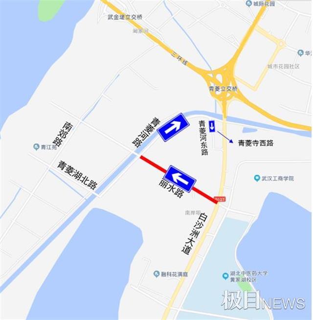 武汉交警介绍,丽水路(白沙洲大道至青菱河路)将于3月20日至9月20日进行道路维修施工,施工期间交通组织措施为:丽水路(白沙洲大道至青菱河路)实行机动车由东向西(白沙洲大道往青菱河路方向)单向通行;青菱河路(丽水路至白沙洲大道)实行机动车由西向东(丽水路往白沙洲大道方向)单向通行;青菱河东路(青菱河路至青菱寺西路)实行机动车由北向南(青菱河路往青菱寺西路方向)单向通行。