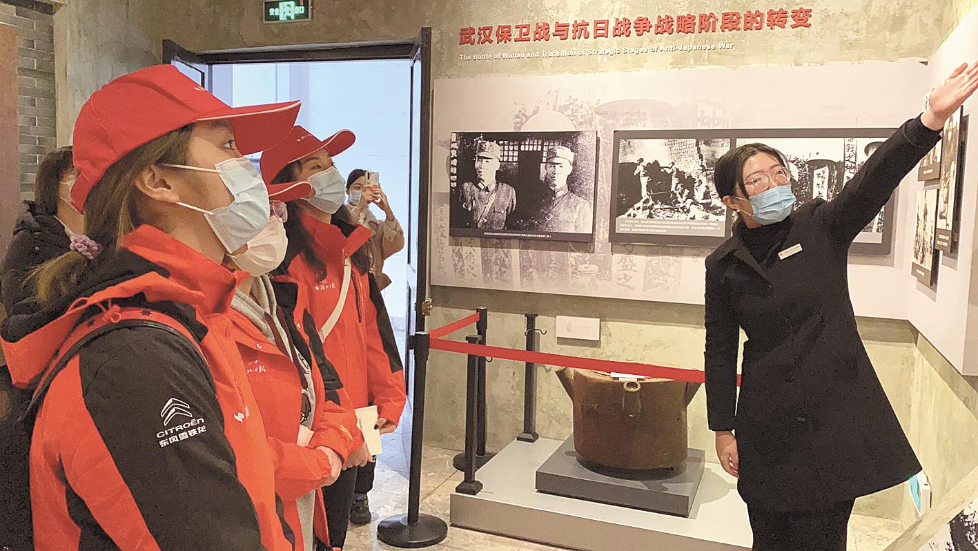 在八路军武汉办事处旧址纪念馆,讲解员向“ 后”大学生介绍“八办”历史。