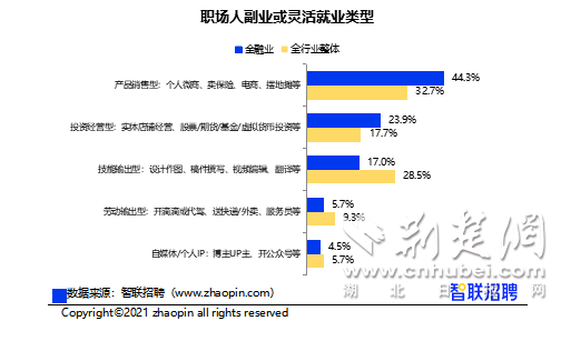 站在最接近市场动态与商业变革的地方,金融人才自身知识储备与从业经验还带来了更多附加值。在有副业的职场人中,44.3%的金融人才通过产品销售带来新的创收,高出全行业11.6个百分点,还有23.9%在主业之外进行实体店铺经营和投资。