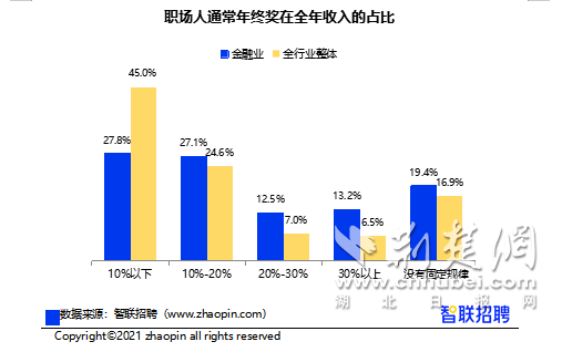 职场人通常年终奖在全年收入的占比。通讯员供图