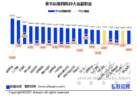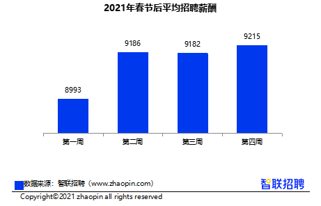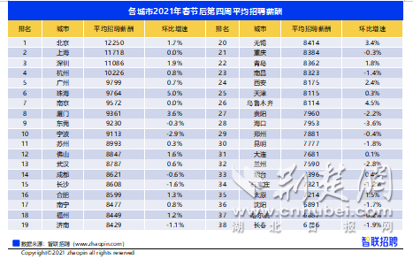 各城市2021年春节后第四周平均招聘薪酬。通讯员供图