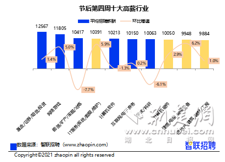 另外,房地产/建筑/建材/工程行业招聘薪酬也在环比上升1%后来到本周第十名。