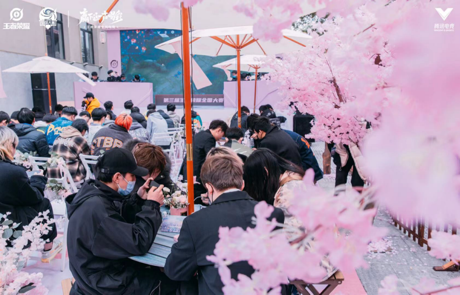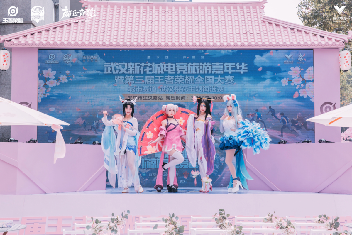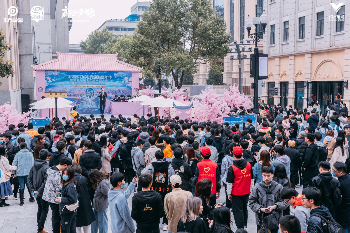 3月20日的上午,武汉“相约春天赏樱花”系列活动在江汉路步行街揭开帷幕。在「2021花Young武汉之樱·舞」市集摊位中,一抹不一样的色彩吸引了无数武汉市民的目光——武汉新花城电竞旅游嘉年华暨第三届王者荣耀全国大赛武汉樱花主题赛事在这里举办。海选赛在浪漫纯美的江城樱花中圆满落幕,宣告武汉电竞+旅游战略的成功落地。