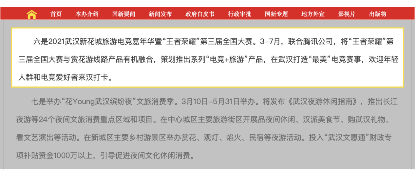 早在今年3月3日的“相约春天赏樱花”新闻发布会上,武汉文旅局领导就正式宣布将与腾讯公司达成合作,共同举办2021武汉新花城旅游电竞嘉年华暨“王者荣耀”第三届全国大赛。