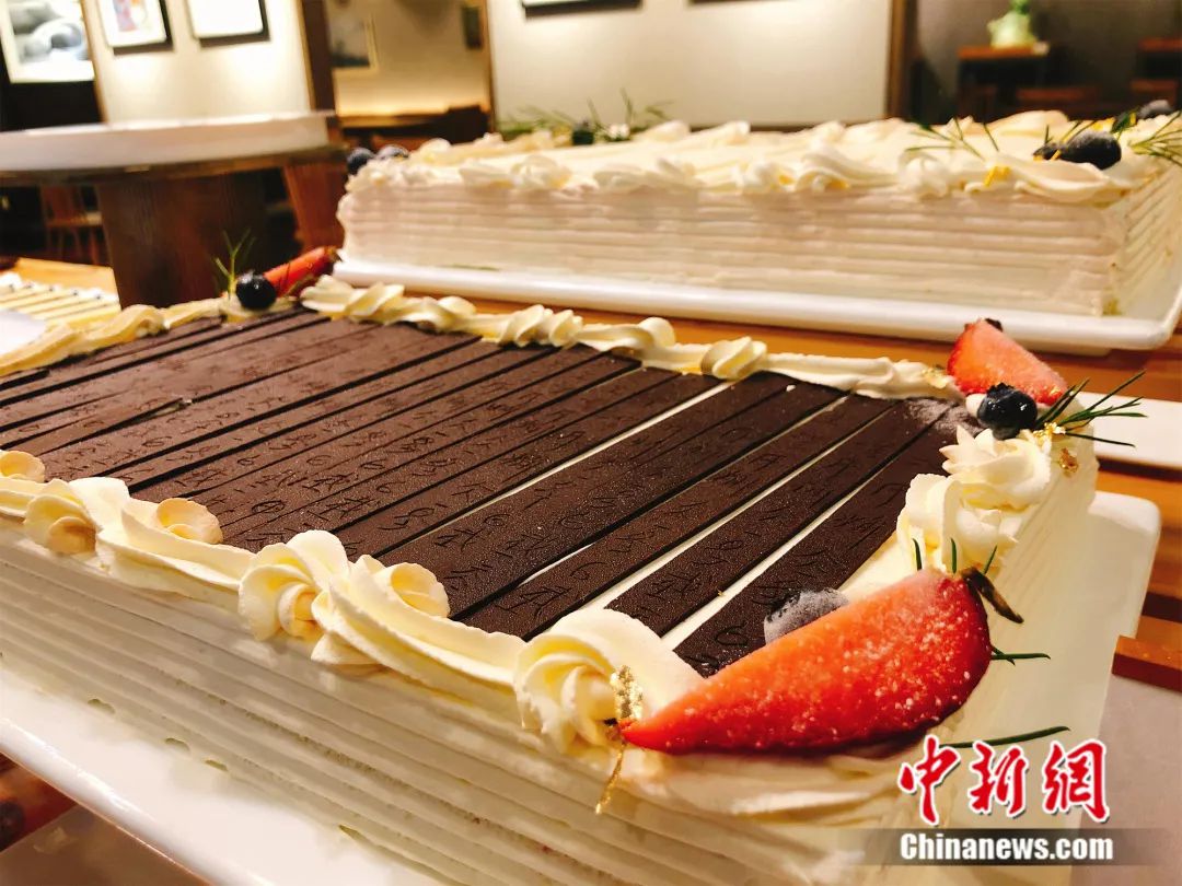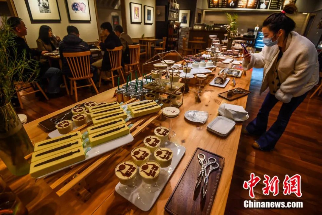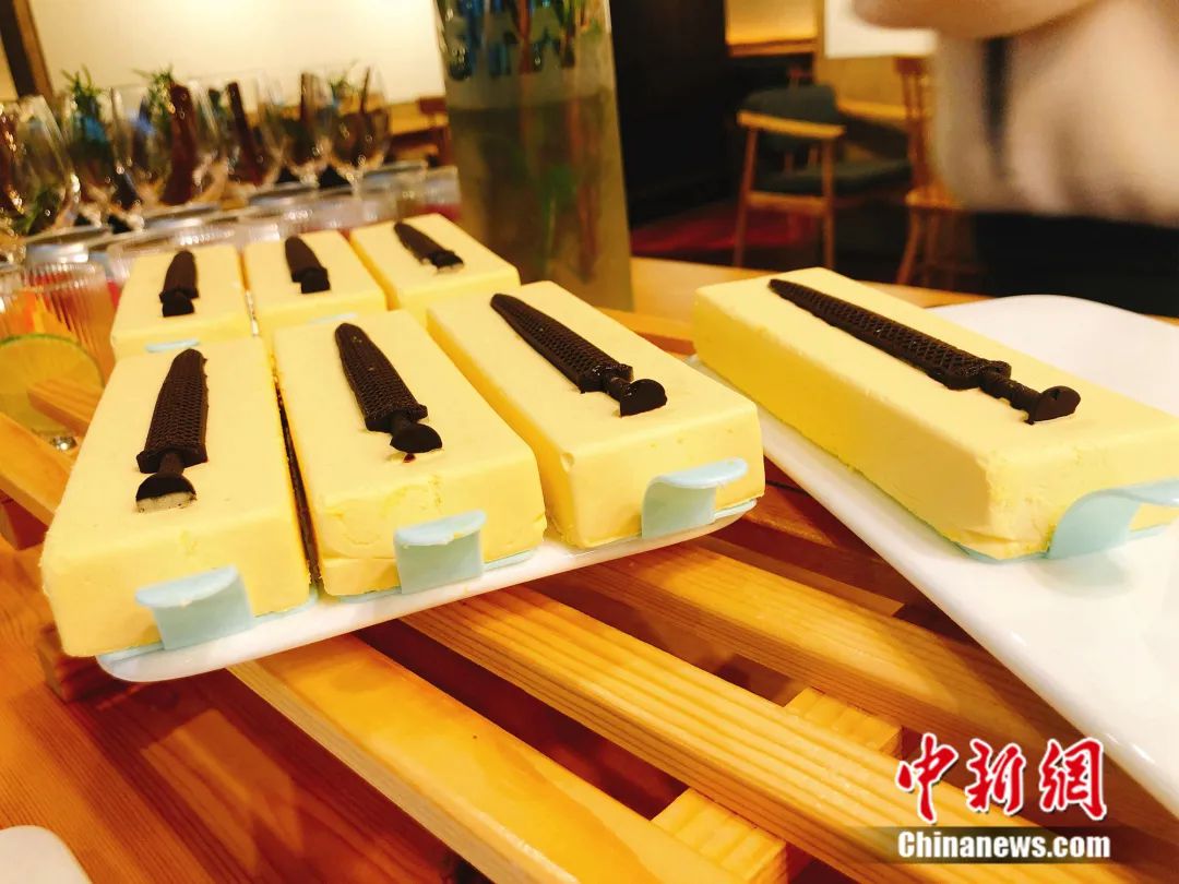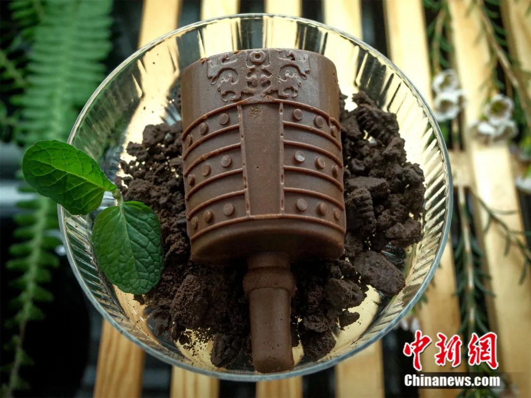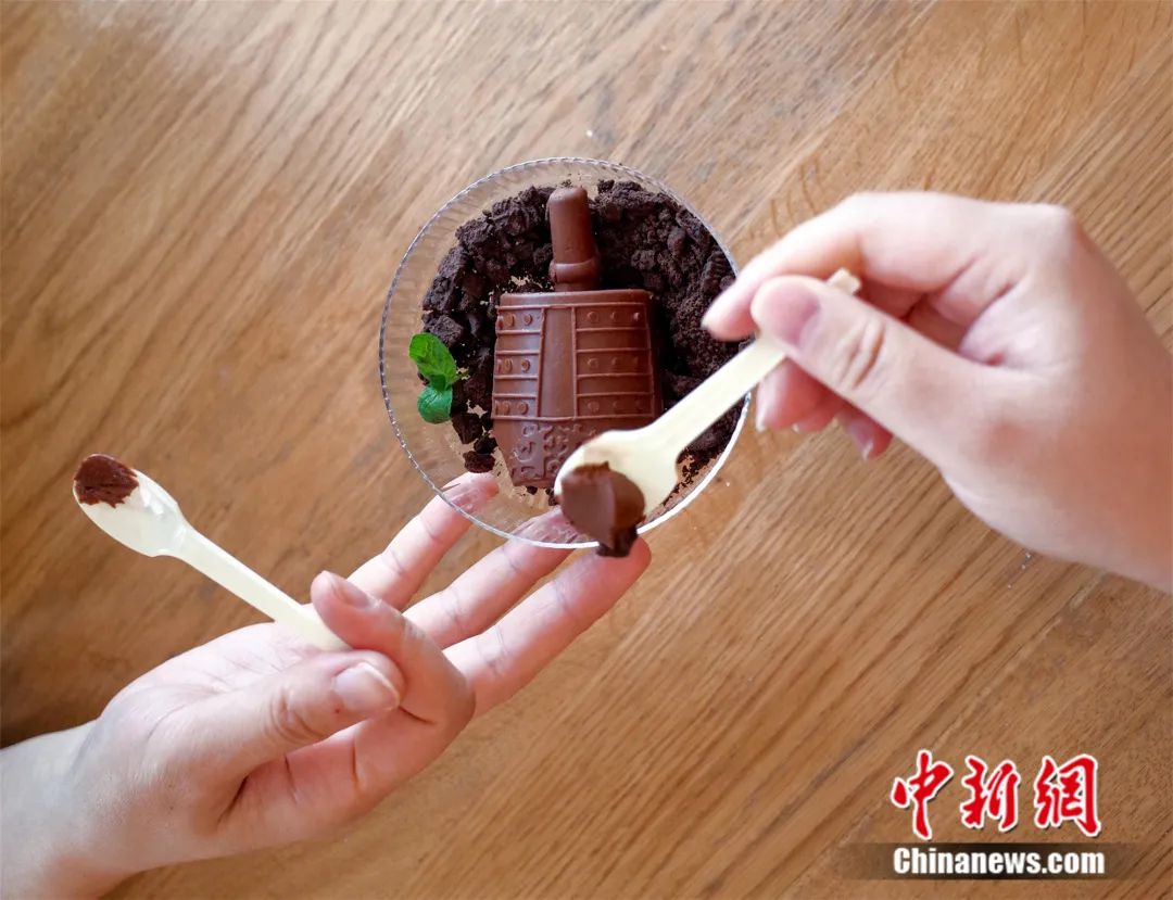 游客品尝“编钟”巧克力蛋糕。张畅 摄