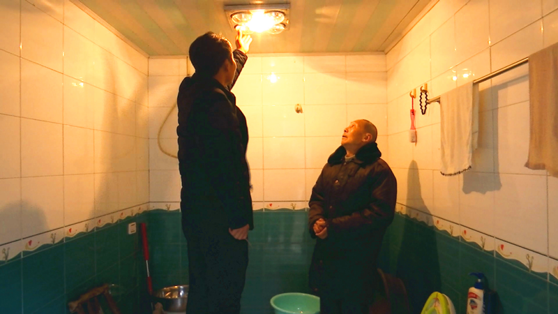 家住新岗村的胡大爷试了试开关,看见浴霸灯修好了,很是高兴。