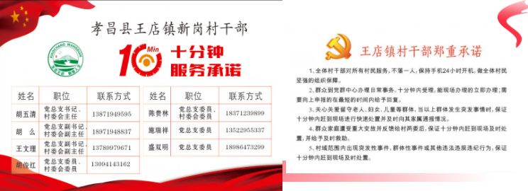 胡大爷口中的“他们”说的是村干部,新岗村党总支书记胡五清等7名村干部划片包干,向全体村民发放“10分钟服务承诺”卡,将村民关心的就业、教育、医疗等方面服务需求纳入承诺范围。如此一来,群众对村“两委”更加信任了,该村先后有100多名党员、群众主动认定服务岗位,以身示范,及时帮助群众化解矛盾,形成良性循环。
