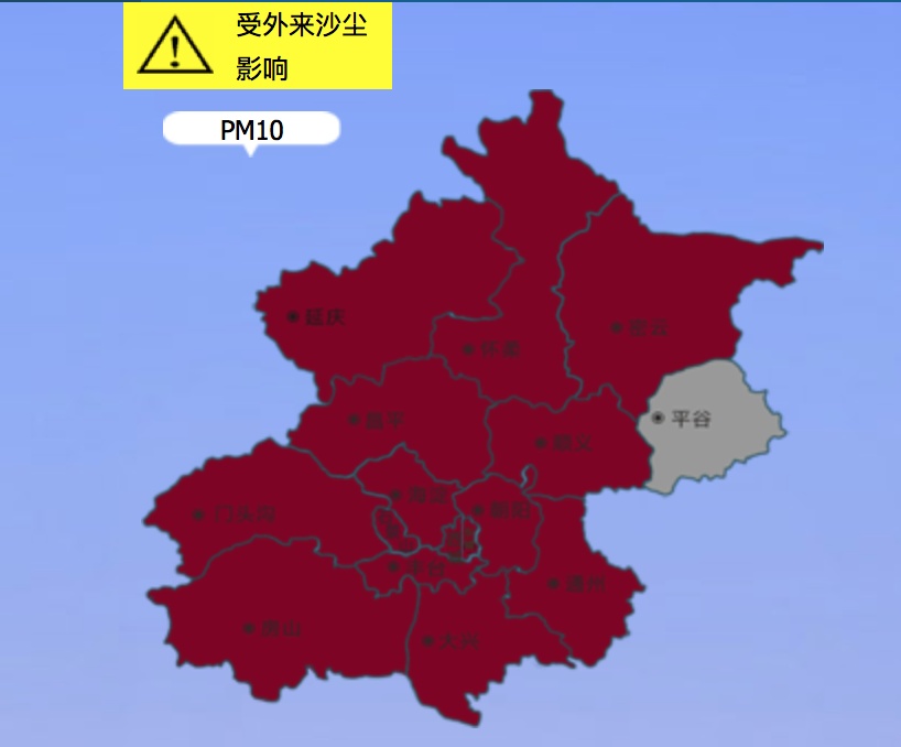 另外,根据北京市生态环境监测中心实况,全市空气质量仍为最高一级的严重污染水平,PM10空气质量指数“爆表”。