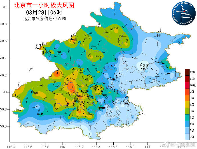 根据气象部门监测,截至28日7时,全市大部分地区能见度在1~2公里,而通州的部分地区能见度不足1公里,出行需注意交通安全;由7时极大风图可以看到,本市大部分地区阵风风力较大,如果有出行计划请务必做好防风措施和健康防护。