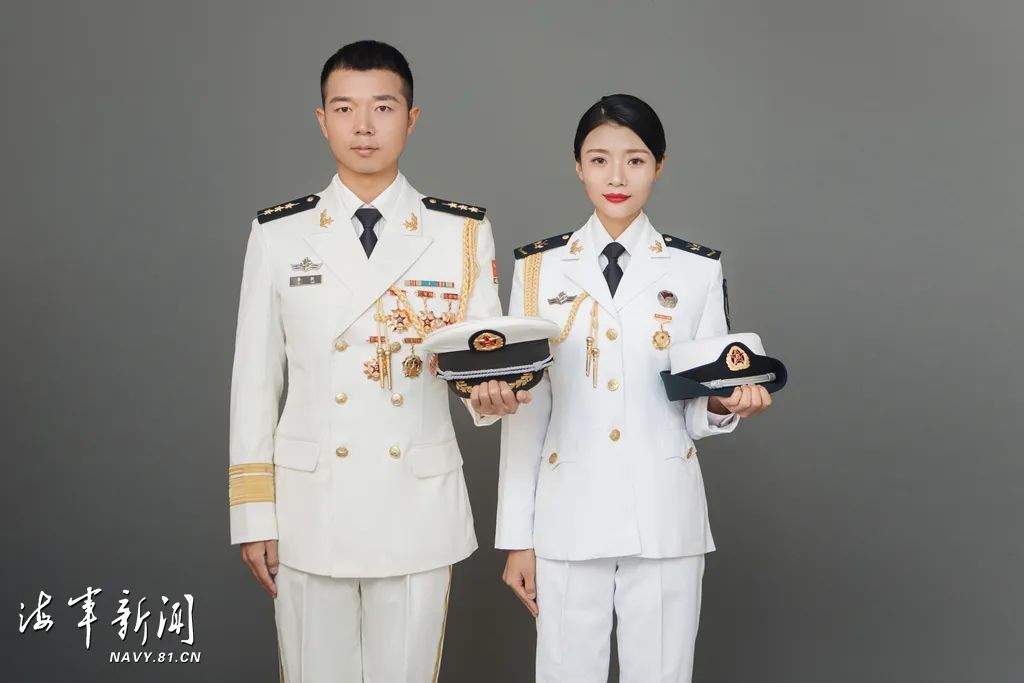 两人穿上白色的军装,拍了一组结婚照