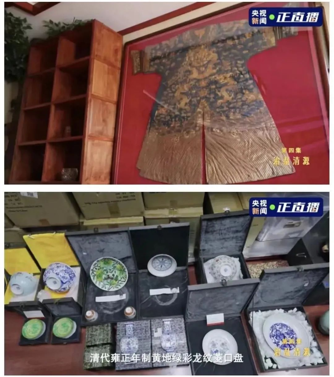 弟弟拥有清代蓝底蟒袍等多件古董