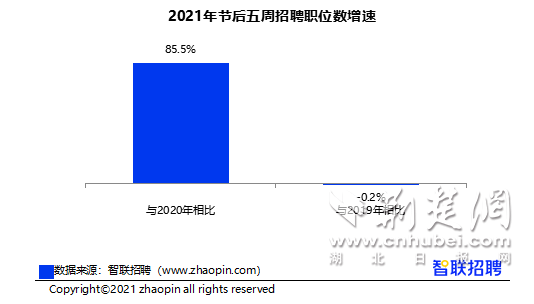 2021年节后五周招聘职位数超去年85.5%,追平2019年