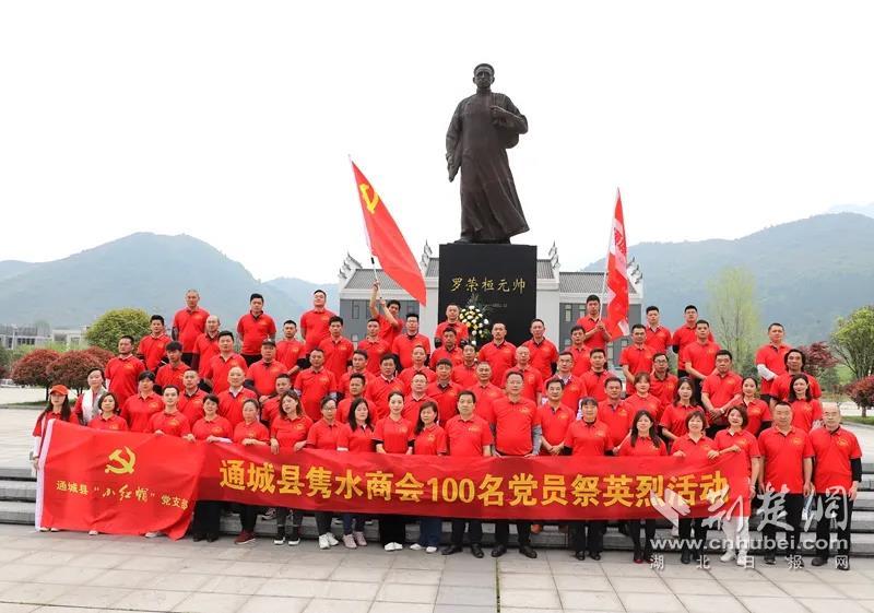 通城县100名党员“祭英烈”活动中,在县委统战部、县工商联的参与下,隽水商会党支部、“小红帽”党支部联合商会家居建材、广告传媒、文化旅游、家政物业等13个行业委员会的100名党员(入党积极分子),自发前往马鞍山烈士陵园、罗荣桓元帅广场(通城秋收运动纪念馆)、英雄母亲黄菊妈陵园、红河烈士纪念碑和高冲公社党史国史馆等地祭扫,缅怀、追思革命先烈。