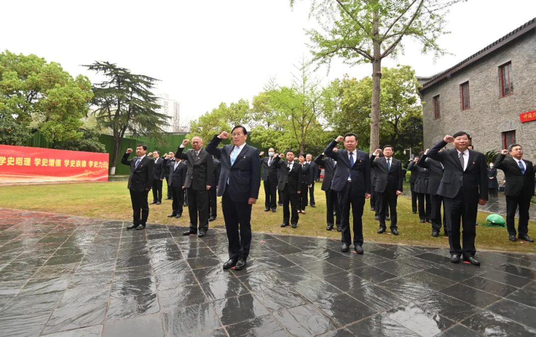 市委理论学习中心组全体成员走进中共五大会址纪念馆,现场重温入党誓词。记者郭良朔 摄