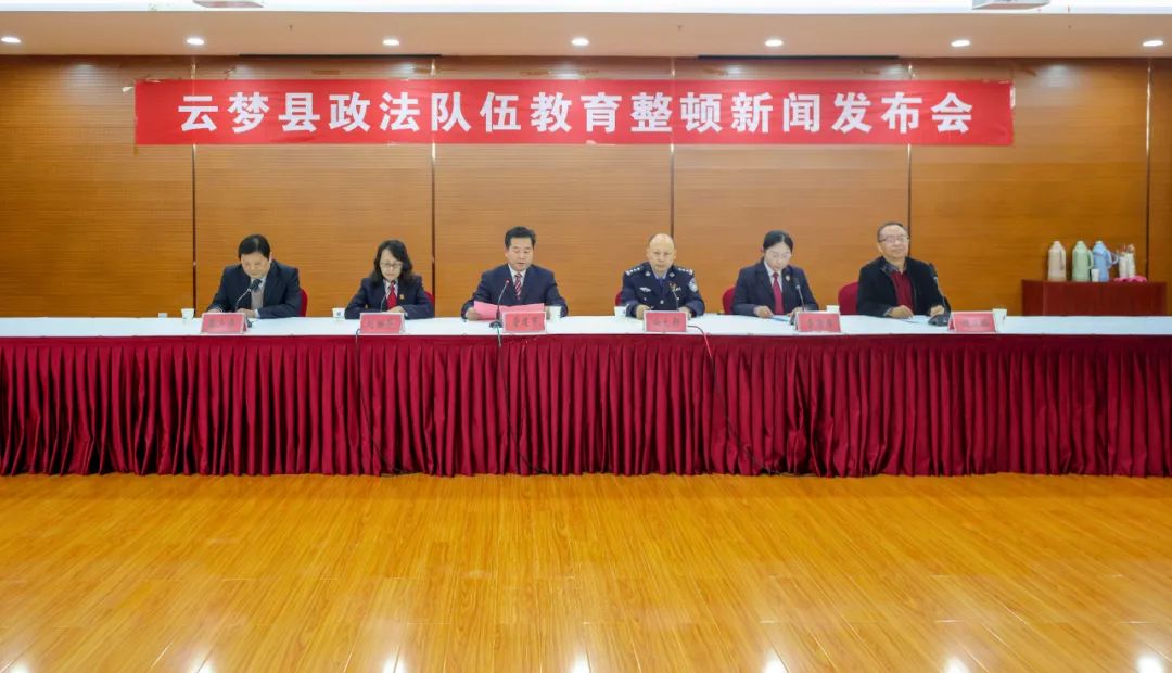 云梦县召开政法队伍教育整顿新闻发布会,云梦县委常委、政法委书记、县政法队伍教育整顿领导小组副组长、办公室主任詹建军介绍全县政法队伍教育整顿工作开展情况。县直政法各单位主要负责人出席新闻发布会并回答记者提问。发布会由县委宣传部副部长谢庶麟主持。