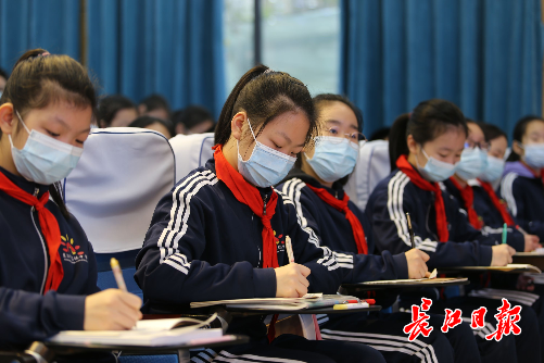二桥中学七年级学生认真听专题报告。长江日报记者杨幸慈 摄