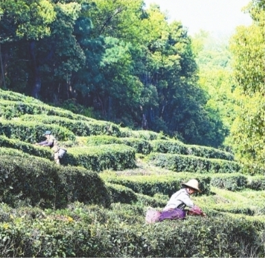 4月4日清明,天气放晴,茶场一片繁忙,茶农在茶园忙着采摘“清明节”的第一道春茶。