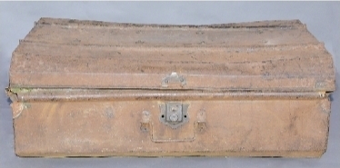 铁箱为铁质,长方体,长70厘米,宽50厘米,高27厘米,重12公斤。铁箱由白铁皮打制而成,箱内刷有红色油漆。箱盖上有两个横杠,箱盖及两侧各铆有8个铁质乳钉,用作加固及装饰。铁箱的正面和两侧各有一个铁制吊环拉手。