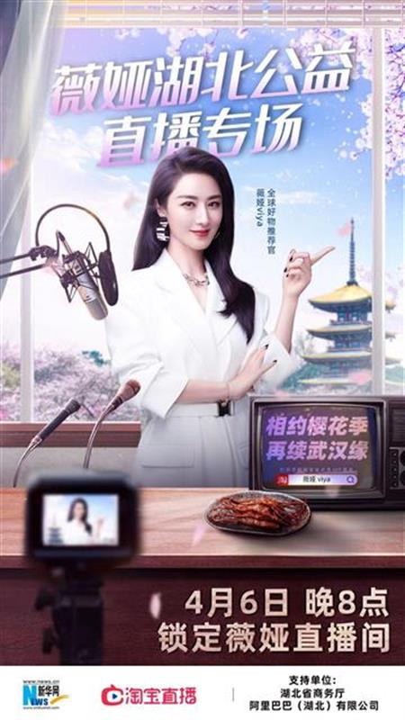 4月5日下午,薇娅在官博、官微均官宣了6日晚8点举行湖北公益直播的消息。薇娅表示,在过去的很长一段时间,心里总是会惦念武汉这座城市。此次公益直播专场,薇娅将再次为湖北带货,“让我们相约樱花季,再续武汉缘”。