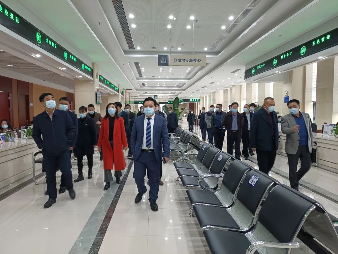 异地商会一行参观了区便民服务中心、区营商办、新发地项目现场、城市中央广场、金卉庄园和保丽新厂。