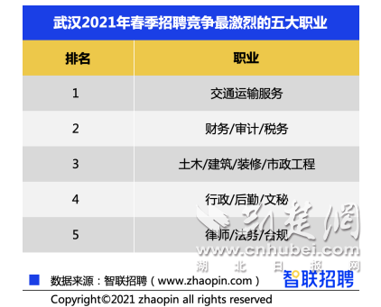 武汉2021年春季招聘竞争最激烈的五大职业。通讯员供图