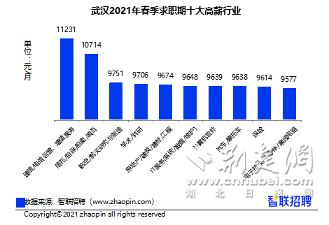 武汉2021年春季求职期十大高薪行业。通讯员供图
