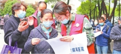 “今天我不上班,我也来!”“还有我!”……短短几分钟,接种队伍里就有30多位年轻人站了出来,大家来到医院志愿服务队站点,穿上红马甲成为了志愿服务队临时队员。