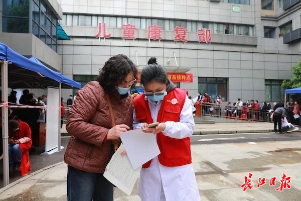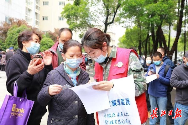 大学生小蒋和室友结伴来湖北省荣军医院接种疫苗,听到医院招募志愿者,帮助老年人登记信息和维持现场秩序,她们第一时间报了名。“老年人需要帮助,大家互相帮忙就都可以早点打完疫,早点实现全民免疫。”