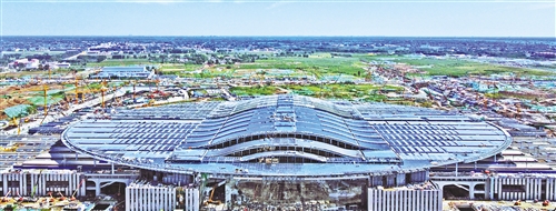 京雄城际铁路是京津冀协同发展国家战略的重要交通支撑,是京津冀城际交通网的重要组成部分。2020年12月27日,京雄城际铁路实现全线开通运营。图为俯瞰京雄城际铁路雄安站。孙立君摄(中经视觉)