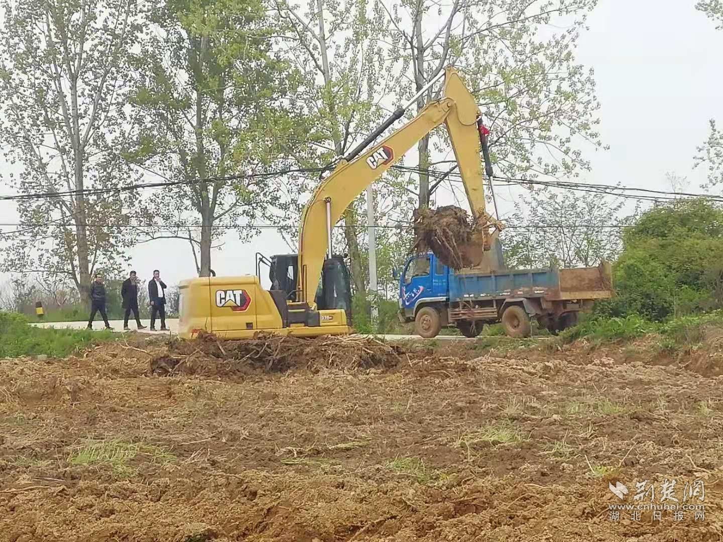 驻村镇干部、村干部和工作队视察郭山茶场土地整理情况。通讯员 供图