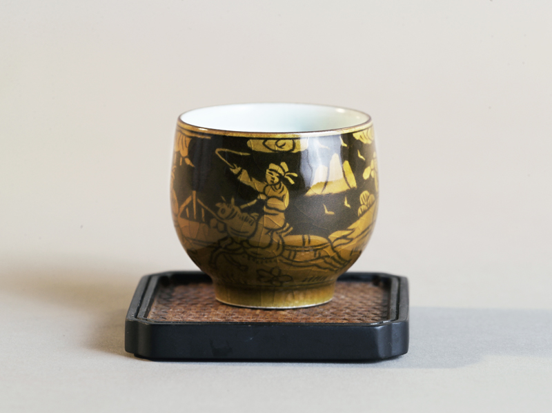 状元打马,热闹游街。质地细腻、铿锵有声的陶杯上,人物形象活灵活现。“状元打马游街”是黄龙湖马口陶经典系列,在鳝鱼黄陶杯与彩泥瓷杯上以刻刀剔花制作成型,反映状元中举后被赐马游街的热闹景象。