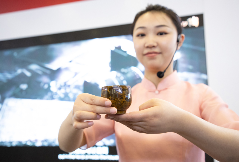 “我手中这款‘状元打马游街’系列陶杯,刻画的是状元中举后被赐马游街的热闹景象。”茶文化展品区,茶艺师喻星声情并茂的介绍,引来不少外宾围观。