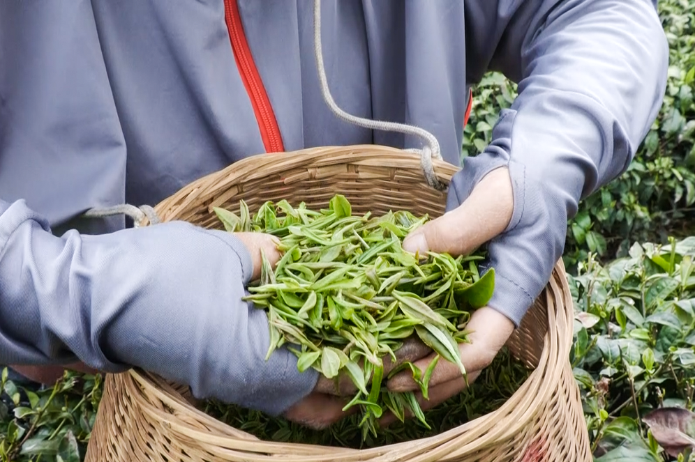 在合作社的茶场,一排排错落有致的茶树似层层波浪,漫山遍野,一行行茶树抽芽吐绿,翠绿的茶芽散发着沁人心脾的茶叶清香。茶农们分散在茶园内,忙着采摘首批春茶,赶制精品茶叶。