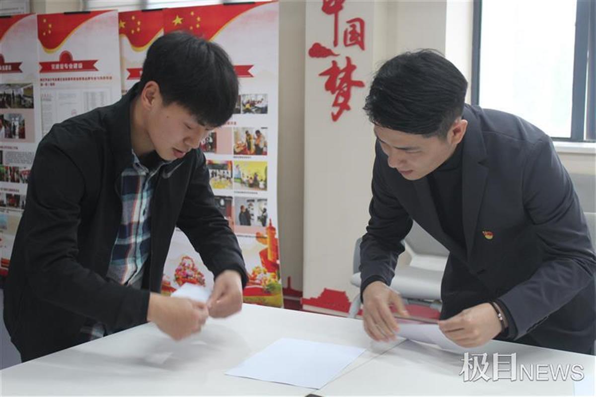 “不同折法的纸飞机有不同的飞行方向,如果想做飞的最远的‘机型’,咱们就直接折最简单的纸飞机,如果想让飞机拐弯,就给纸飞机加个机翼。”在当天《劳动与卫生》课前,张晶老师将学生黄逸冰喊到办公室里,让这位“纸飞机迷”教自己折纸飞机的方法。拿出一小叠白纸,师生俩便开始捣鼓起来。