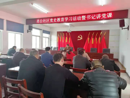 肖台社区党委从党史学习、现场教育、讲授党课等方面对社区党史学习教育进行统筹安排。