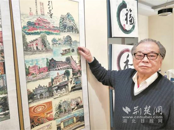 刘爷爷今年80岁,是一位有着52年党龄的老党员。正值中国共产党成立100周年之际,他选择以历次党代会会址为主体,历时5个月时间,绘制了一幅名为《引导》的作品。