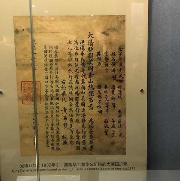 华工黄华饶在光绪八年(1882年)拿到了由大清驻旧金山领事馆颁发的护照。目前,这张护照就藏于江门五邑华侨华人博物馆中,是该馆收藏的最早时期的中国护照。