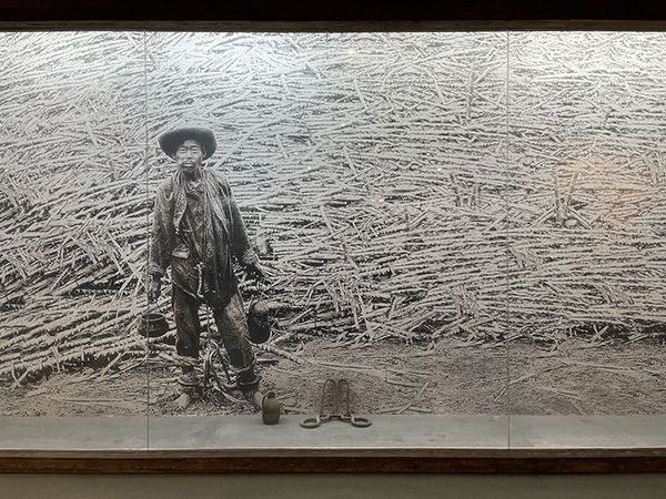 江门五邑华侨华人博物馆展出的华工图片。澎湃新闻记者 吴怡 翻拍