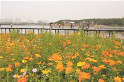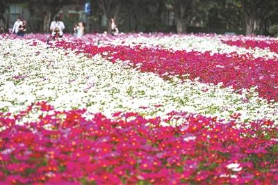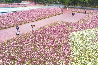 13万平方米的波斯菊花海,近日在海心沙公园绚丽绽放。