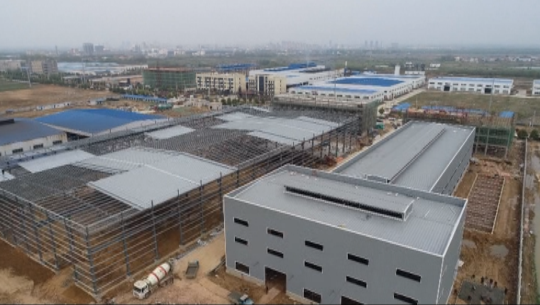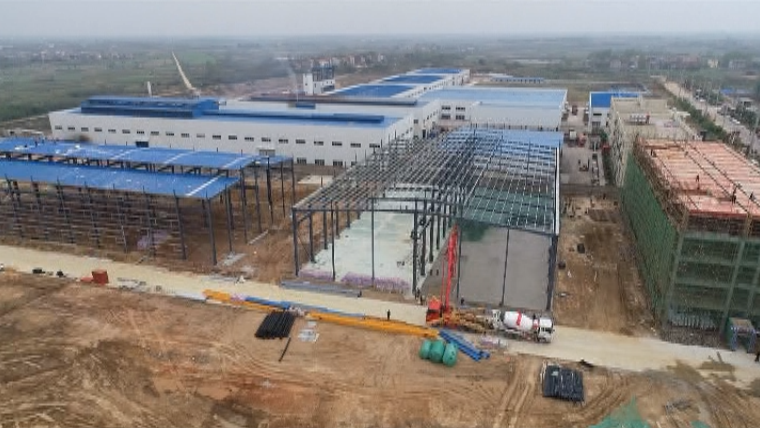 湖北桦昌电工材料有限公司项目现场负责人陈德灿说,项目主要分四块,宿舍楼、办公楼、熔炼车间和加工车间。宿舍楼和办公楼主体差不多已经完成了,熔炼车间和加工车间主体已经起来了,就差加工车间的盖板,预计下个星期可以完成,这个工厂预计今年5月份就可以投产了。