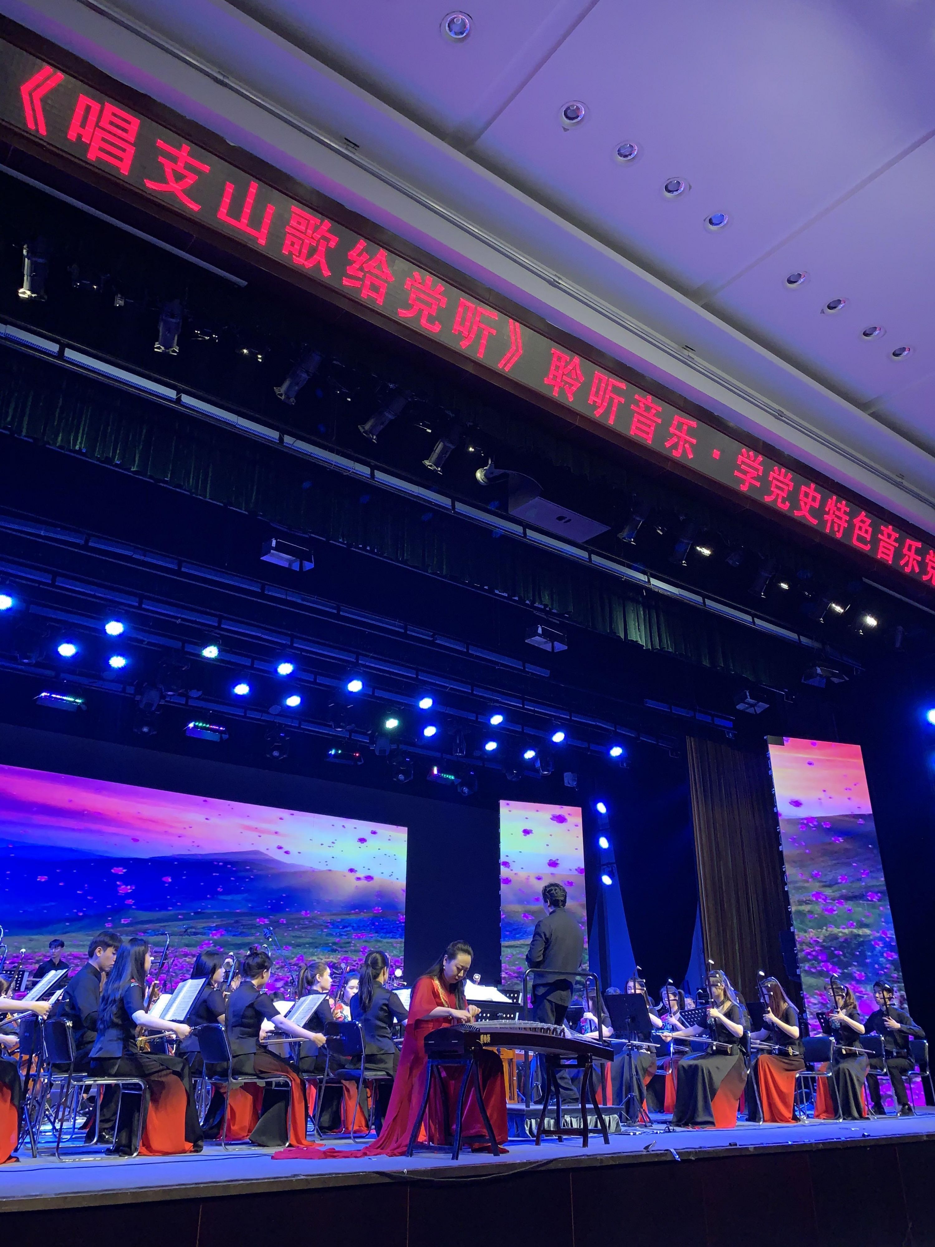 清脆悦耳的唢呐独奏《红军哥哥回来了》让人听得入神,这首陕北民歌生动地描绘了红军凯旋而归,受到群众热烈欢迎,并又踏上征途的情景,展示了久经磨难的陕北人民欢迎抗日红军凯旋的欢腾景象,表达了军民之间的鱼水深情。现场,笛子二重奏《小八路勇闯封锁线》、古筝二重奏《山丹丹花开红艳艳》、民乐合奏《我的祖国》《北京喜讯到边寨》等乐器演奏轮番上演,给大家献上一场高水准的演出,创造了高质量的视听体验。活动最后,在场党员干部和演员齐唱《没有共产党就没有新中国》,在铿锵有力的歌声中,活动圆满落幕。