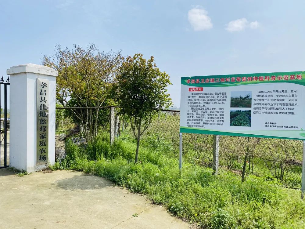杨晨曦说,第一批种植的是蓝莓,有54.8亩,它比较适合小孩采摘。第二批种植的有梨树和桃树,有180亩,把梨树做成了棚架式,也是比较适合采摘、观光、旅游的,后期他想打造成一个集观光旅游采摘垂钓于一体的休闲农庄。