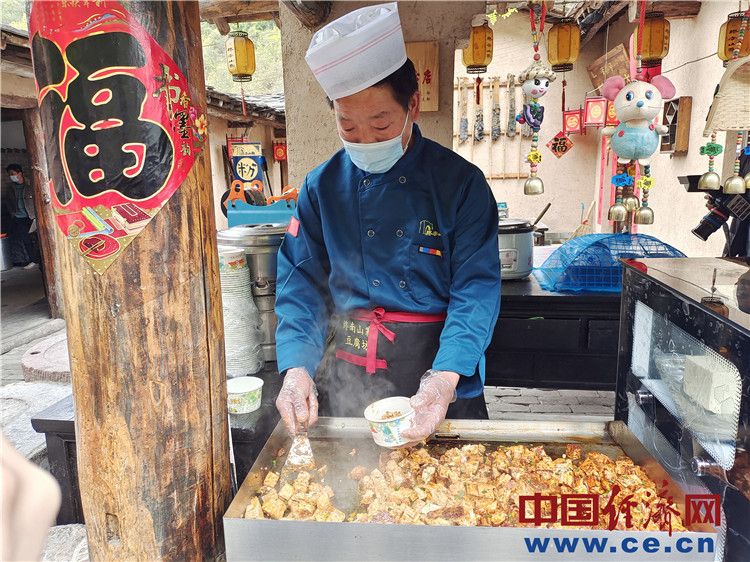 在终南山寨的中心街区,有一家网红店“老豆腐坊”,店老板杨传红告诉记者,在5-10月的旅游旺季,他店里常常是坐满之后还有许多人站着吃。