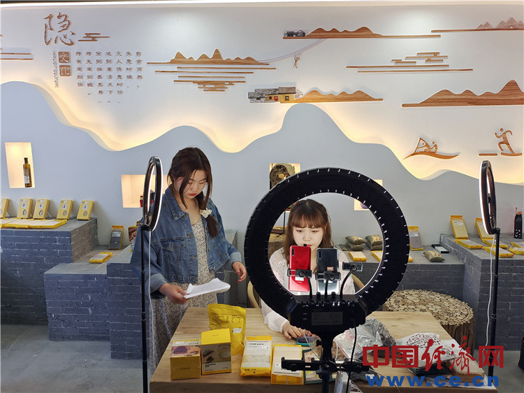 图为终南山寨的双创中心里,主播正在直播带货。 经济日报-中国经济网记者 梁木 摄