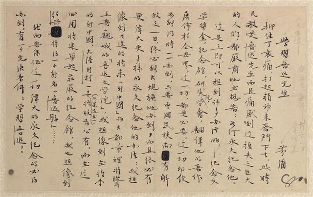 湖北日报讯(记者海冰、通讯员王有珍)4月22日,“芳馨遗远春温永存——上海鲁迅纪念馆藏中国现代作家手稿展”在江汉关博物馆开展,该展览由江汉关博物馆与上海鲁迅纪念馆联合主办,展出30余位著名现代作家的46件手稿。这些手稿包括小说、杂文、传记、年谱、诗稿、信笺等多种形式,除了鲁迅的多篇手稿,还有茅盾撰写的纪念鲁迅的手稿、沈从文的书信手稿、丁玲的小说手稿、瞿秋白的译稿等。