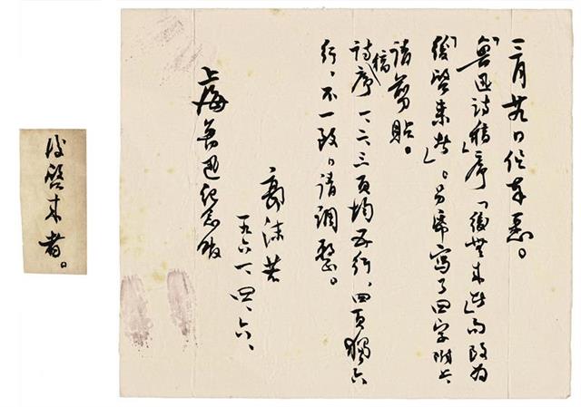 据介绍,上海鲁迅纪念馆不仅藏有鲁迅的珍贵手稿,还留存了一批中国现代作家手稿,如由鲁迅保存的柔石诗稿,由谢澹如保存的丁玲、胡也频的小说手稿等。特别是上海鲁迅纪念馆1999年新馆落成,设立的现代作家专库“朝华文库”,得到鲁迅同时代友人和弟子的热情支持,黄源等20多位现代著名作家的遗物先后入藏该馆,其中不乏手稿或手迹。为将这些珍贵文字流布给大众,本次展览遴选、展出了鲁迅等30余位现代作家的一批手稿,同时还展出曹聚仁、吴朗西、赵家璧等著名文化人士使用过的相关物品,以呈现鲁迅及其同时代作家的风骨和精神。