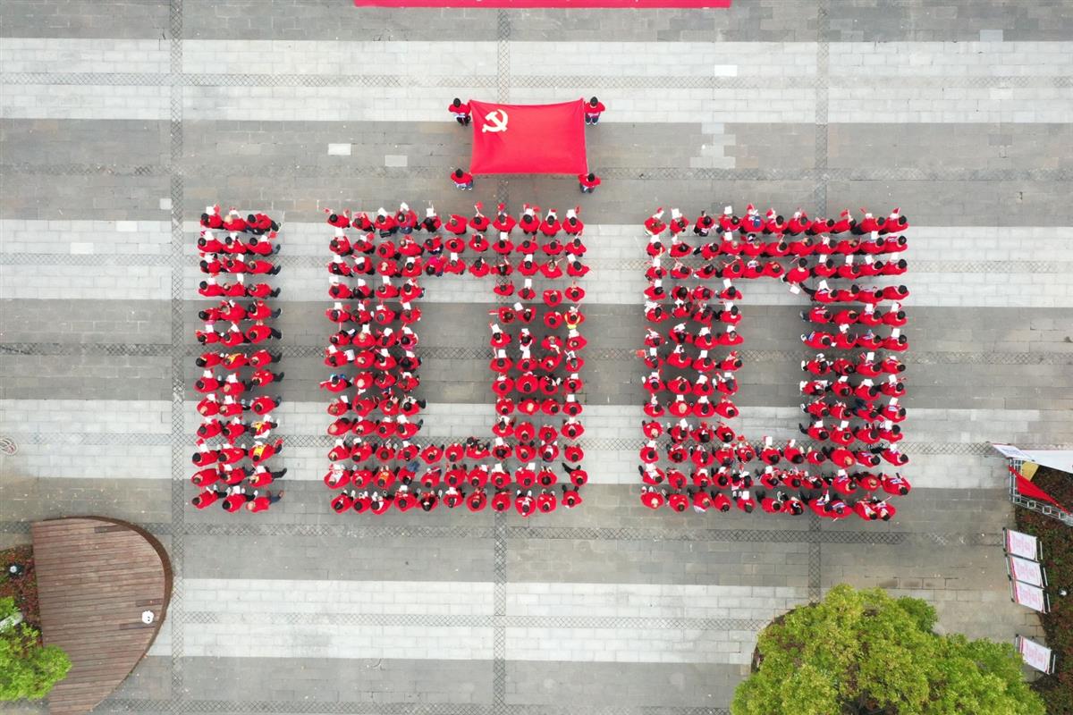 4月23日,武汉市后官湖绿道红旗飘飘,到处洋溢着欢乐的气氛。来自武汉市市政机施公司、武汉经济技术开发区(汉南区)水务和湖泊局等单位355名党员职工组成巨幅“100”字样,寓意献礼建党百年,拉开了“永远跟党走”健步走活动的序幕。
