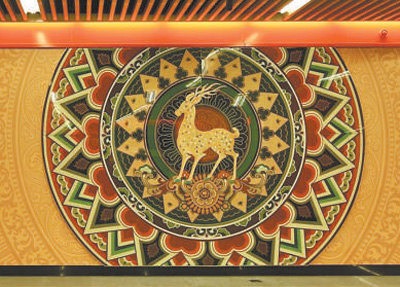 秦思、王哲设计的北京地铁7号线万盛西站《共襄繁荣》壁画(局部)。