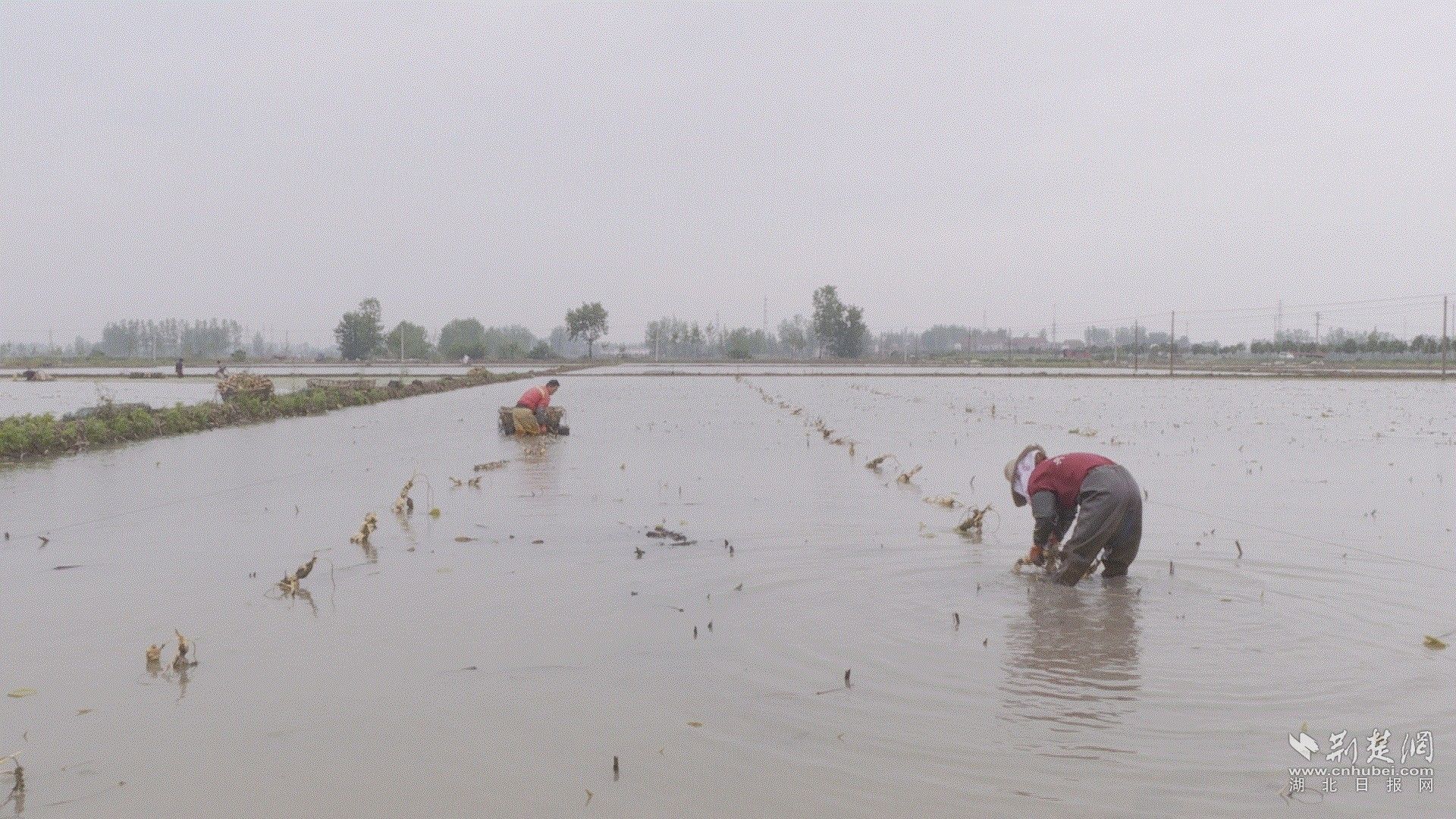 荆楚网(湖北日报网)讯(通讯员程国辉、艾彦中、李鸿)春耕育苗,移栽正好。4月25日,20多名工作人员正在应城市天鹅镇天鹅社区藕池基地移栽藕苗。